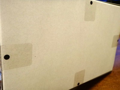 外箱の裏側は、テープでしっかりと固定されているので、まずはこれを切ります。