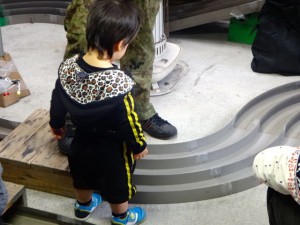 先日ミニ四駆を走らせていた、常連さんのお子さんです。 今は、親子で遊びに来ているんですね。
