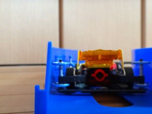 また、ジャンプの姿勢を整える効果もあるので、真っすぐに飛びやすくなります。 さらに、後のガイドローラーを隠すような形になるので、ミニ四駆が浮き上がってコースの壁に乗り上げても、復帰してくれるようになります。