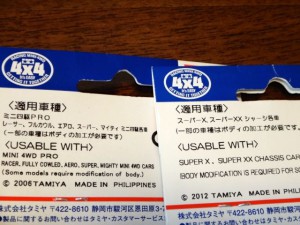 パーツは、複数のシャーシ共通で使えるものと、特定のシャーシ専用のものに分かれます。 購入する際は、自分のミニ四駆がどのシャーシなのかを把握して、そのパーツが使えるか判断しましょう。 特に注意書きが無ければ、共通で使うことができます。